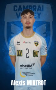 2. Alexis MINTROT5. Fabien LENGRAND7. Hugo VELAZQUEZ9. Noah RULKIN12. Victor MALANDAIN13. Issa MBALA NTSAMA14. Julien SAINT-PE16. Alexandre HOARAU PositionLibéroHeight1m80L'équipe actuelleCambrai Volley CFC
